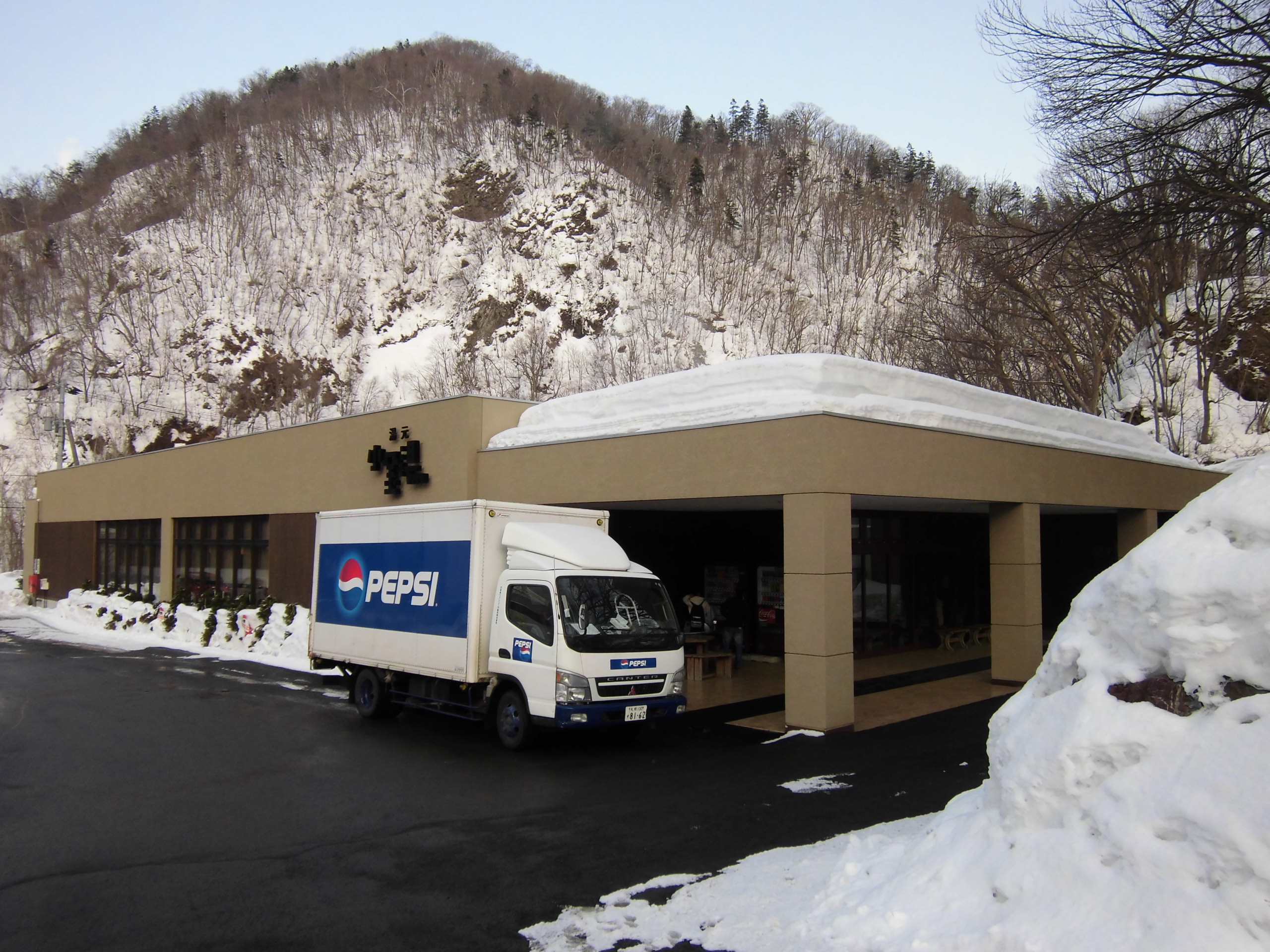 雪降る中、露天風呂は雰囲気が良いですね! いやー、サッパリしてきましたよ!